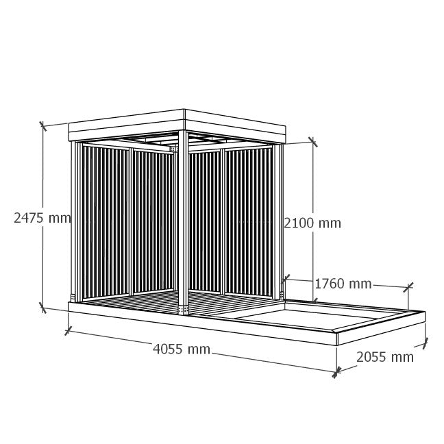 The sunroom walls are made from four upright, double-sided 18x42 mm thermowood board wall modules. Each wall module is 1 m wide and 2.1 m high. The boards are airy and not see-through in direct view.