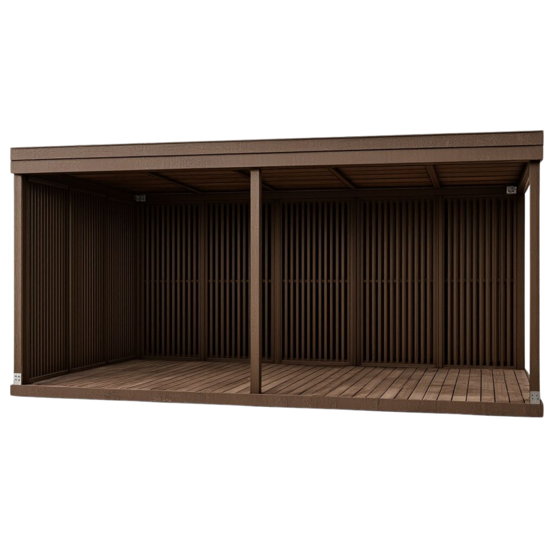 Katoksen seinät kootaan kahdeksasta pystysuorasta seinäelementistä, joissa on kaksipuoliset 18x42 mm lämpöpuulankut. Seinäelementin leveys 1 m, korkeus 2,1 m. Seinä on ilmava ja näkösuojattu.