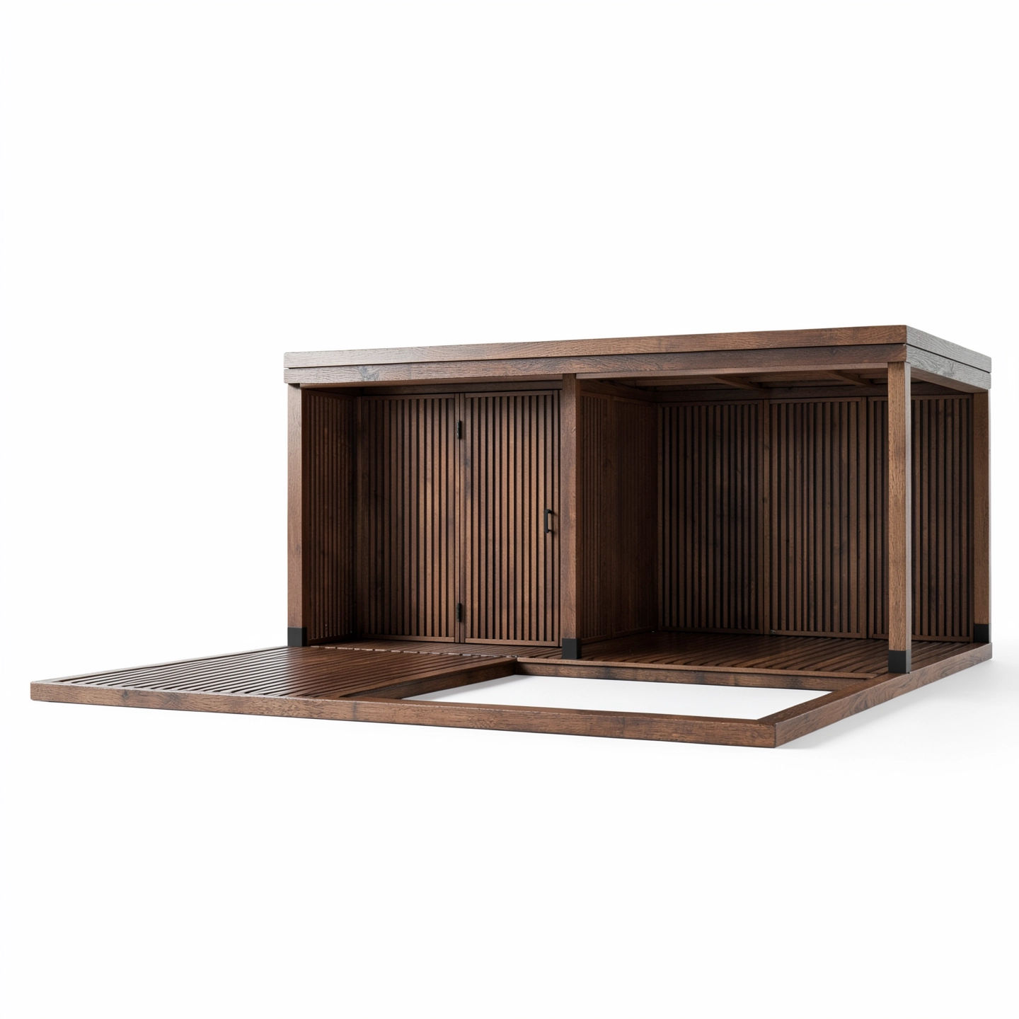 Katoksen seinät kootaan yhdestätoista pystysuorasta seinäelementistä ja yhdestä ovielementistä, joissa on 45x45 mm kestopuulankut.