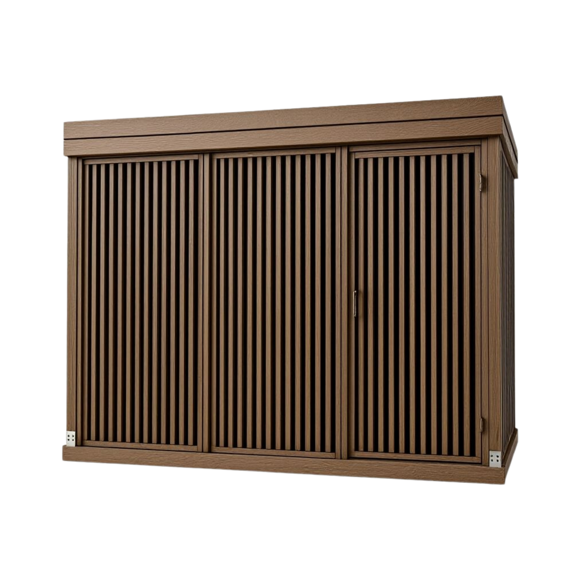Varaston seinät kootaan yhdeksästä pystysuorasta seinäelementistä ja yhdestä ovielementistä, joissa on 18x40 mm lämpöpuulankut ja vanerilevy. Seinäelementin leveys 1 m, korkeus 2,1 m.