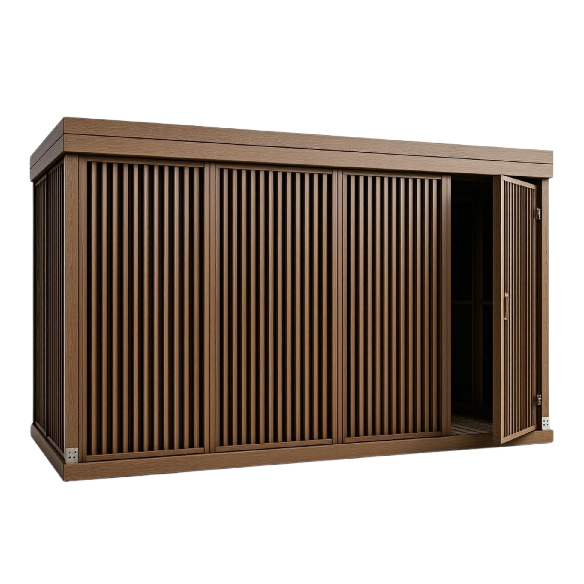 Varaston seinät kootaan yhdestätoista pystysuorasta seinäelementistä ja yhdestä ovielementistä, joissa on 18x40 mm lämpöpuulankut ja vanerilevy. Seinäelementin leveys 1 m, korkeus 2,1 m.
